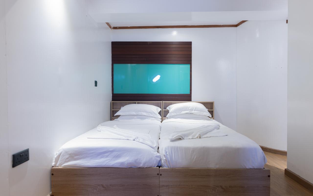 Scuba Diving is the reason to be on board as the seas of the Maldives have a lot to offer - whether in the dryer season or the monsoon season. The boat is, naturally, fully equipped to cater for all scuba diving requirements. There is a 60ft/20m diving sister vessel which will be used to make the dives with a speed dinghy as a safety vessel. The boat also has a full first aid kit and fire extinguishers as you would expect. But, if you don't fancy diving, why not use one of the jet-skis available!