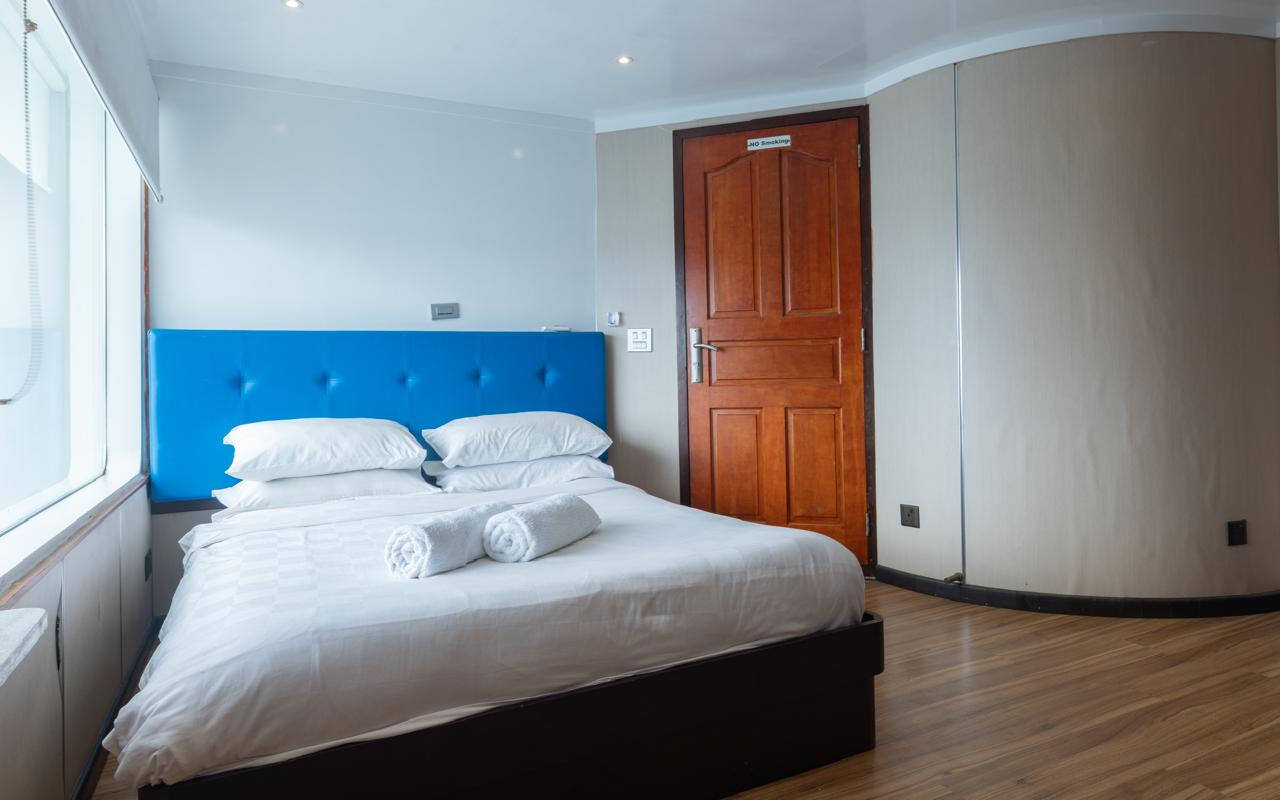 Let's begin with the cabins. The boat comprises 4 'Cruiser Cabins', which are 15sqm, 2 'Cruiser Suites' which are 26 sqm, 4 `Sea Breeze' Balcony Rooms and, for the most exclusive of guests, the 80 sqm 'Skylight Suite' on the 3rd level of the vessel. The suite offers 270 degrees panoramic view of the sea, sky and the night stars, it's own private balcony and outdoor bath adding more luxury to this captain's view suite. However, don't feel hard done by if you're in one of the more modest rooms. Each cabin is fitted to a high standard with ensuite toilet, bath, and high-quality furniture.
