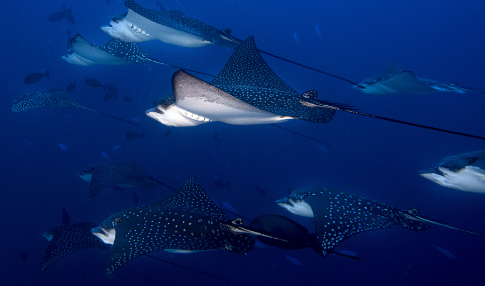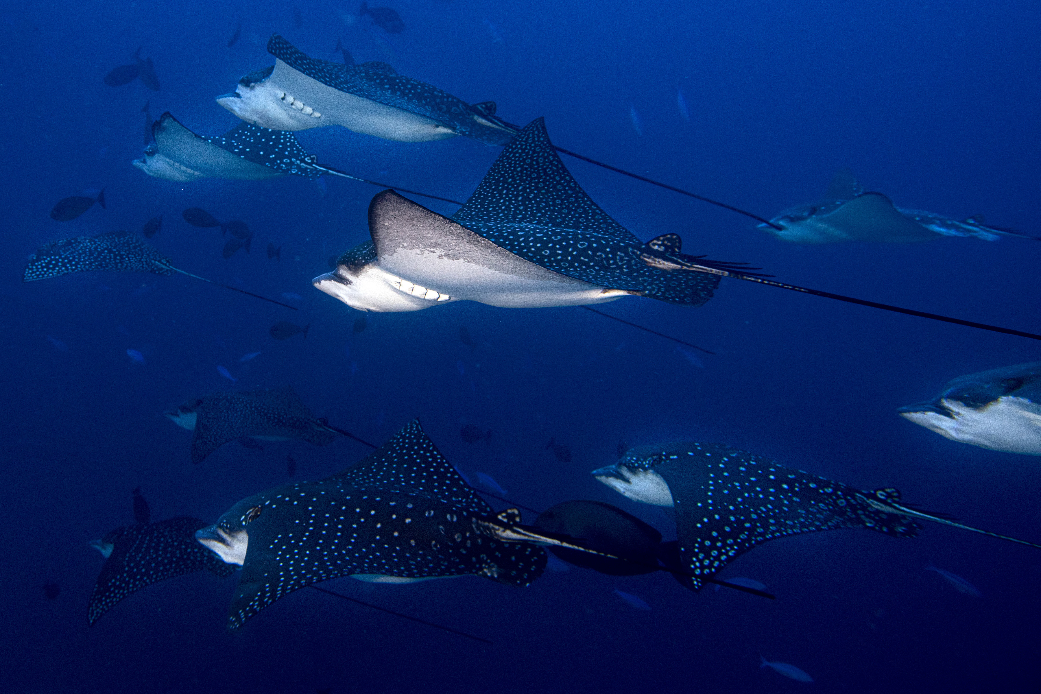 A fantastic dive site for night dives: Fesdu Lagoon in North Ari Atoll in the Maldives, is one of three locations in the world where you can observe manta rays feeding! At Fesdu Lagoon, in the North Ari Atoll, divers can witness a breathtaking display by feeding manta rays in only 15m of water, right off the back of the Maldive Mosaique. A small population of manta rays has learned that plankton is attracted to and concentrated by the lights of us mooring in the lagoon overnight, creating perfect feeding conditions for the manta rays, and even better conditions for an amazing manta dive! Within an hour or so of mooring at sunset, rays start to appear and begin barrel-rolling right beneath the boat as they attempt to gorge themselves on the plankton. We light up the water to attract the plankton and the manta rays. Divers simply sit back and watch the spectacular show unfold as the majestic dances often only inches away. This experience is only accessible by a liveaboard like the Maldive Mosaique as a constant source of light is needed to attract the plankton in large enough concentrations to bring in the manta rays and is best during the northeast monsoon – January to April – when the winds and currents push plankton to the western side of the Maldives.