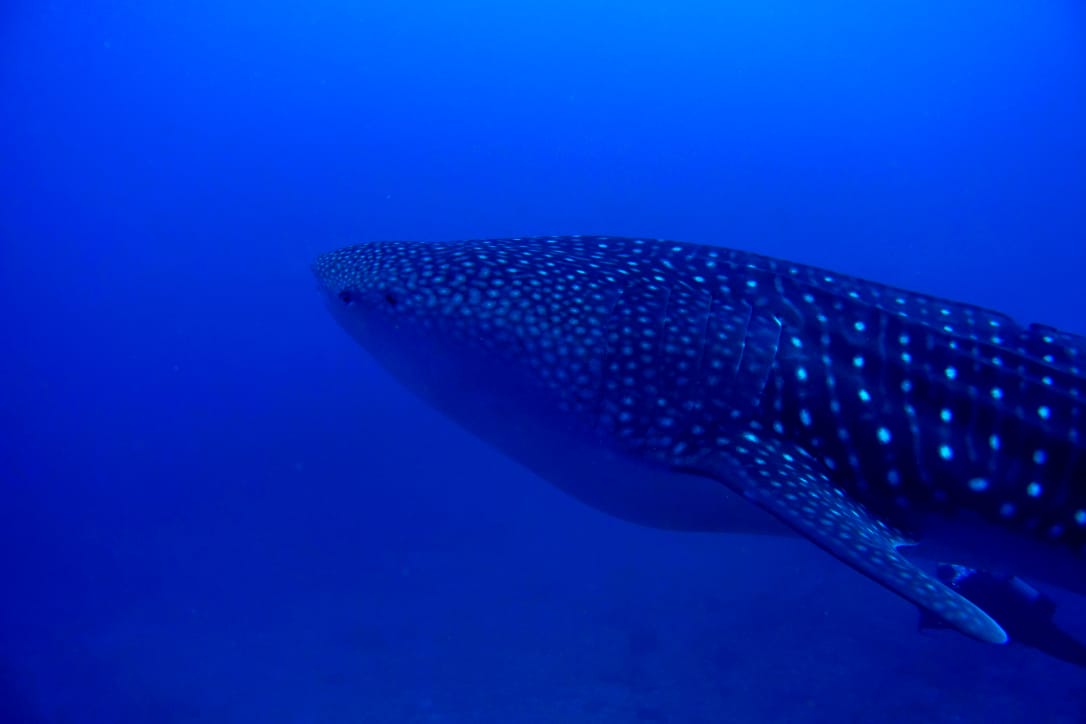 The Maamigili MPA boundary extends 1 km into the sea from the reef fringe at the southern end of Ari Atoll, extending to the northeastern tip of Dhigurah Island and down to the northwestern tip of the reef crest of Rangali Island. This is one area where whale sharks are present almost every day of the year, with exceptionally large congregations of whale sharks occurring during the protracted coral spawning in the north-east monsoon full moon periods. Close to Maamigili Island is the famed Whale Shark Point of South Ari Atoll. Known as the foremost location in the world for spotting and snorkeling with the gentle giants of the sea, over 80 unique whale sharks call this protected region home.
